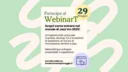 Dopo la scelta del Comune di Campobasso come sede 2025 (tra 59 territori candidati), ecco 2 appuntamenti (e 8 buoni motivi) per iniziare il percorso verso Jazz’Inn 2025 e conoscere il programma e le modalità per candidarsi come case giver per il living lab di open innovation che si terrà dal 29 settembre al 3 ottobre nel capoluogo molisano e nei borghi limitrofi.
